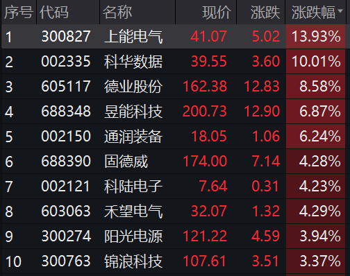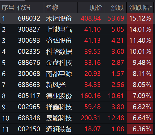 储能概念方面,禾迈股份涨超15%,盛弘股份涨超10%,金盘科技、南都电源、新风光等涨幅居前。