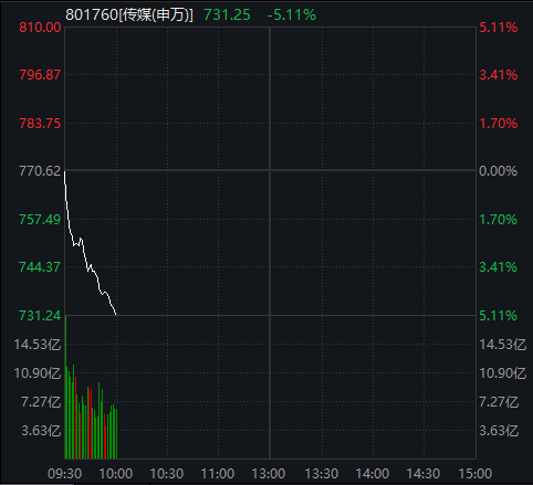 7月3日上午,传媒板块整体大跳水,申万一级传媒板块跌幅超过5%。