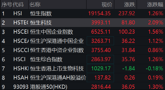 港股市场同样飘红开盘:恒生指数高开0.46%,恒生科技涨0.8%。开盘后港股市场整体走高,恒生指数涨超1%,恒生科技大涨超2%,小鹏、理想等“造车新势力”领涨。