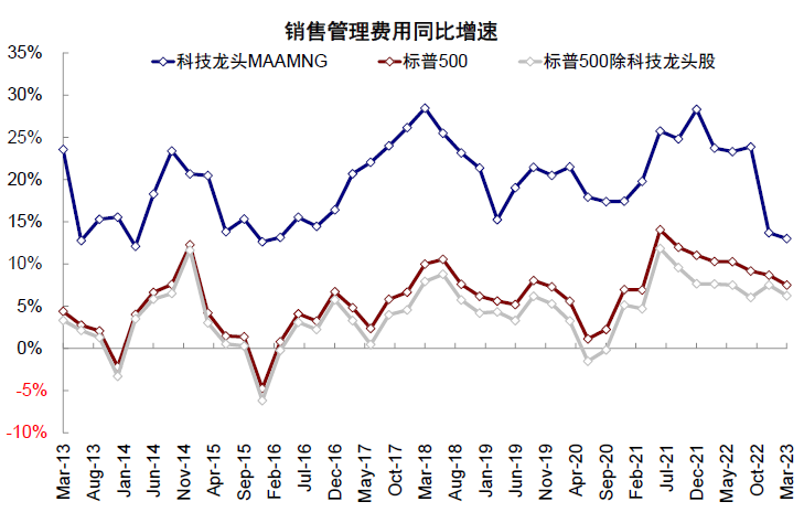 图表18:科技龙头MAAMNG销售管理费用同比自去年四季度开始持续回落,同比增速由28%回落至一季度的13%