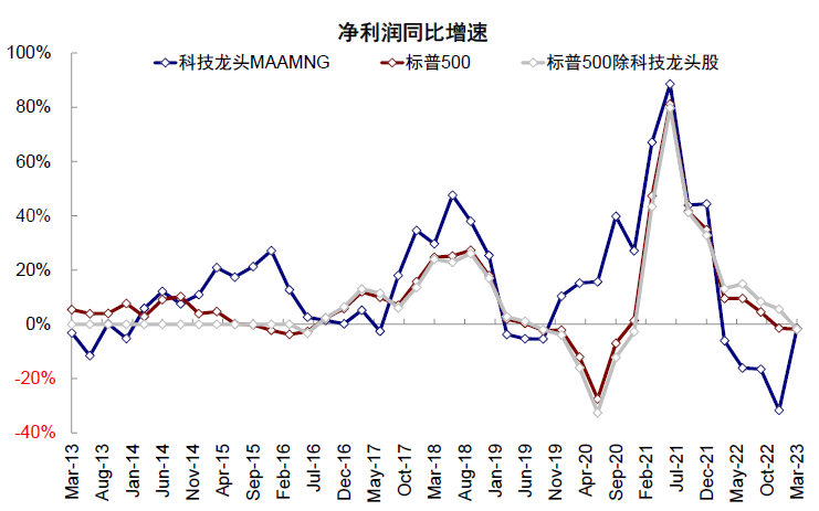 图表19:科技龙头MAAMNG一季度净利润同比较四季度显著抬升,而美股整体及其他股票净利润增速仍在下滑