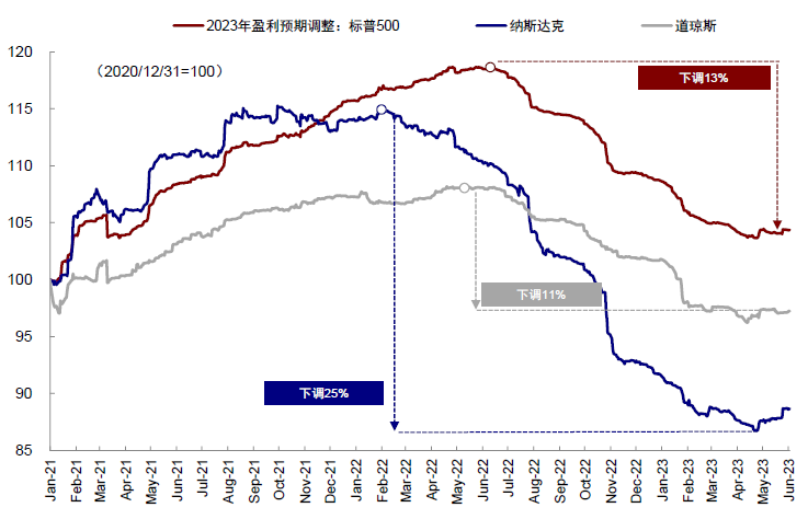 图表15:纳斯达克已经领先价值周期半年开始下调盈利,从高点已经下调25%