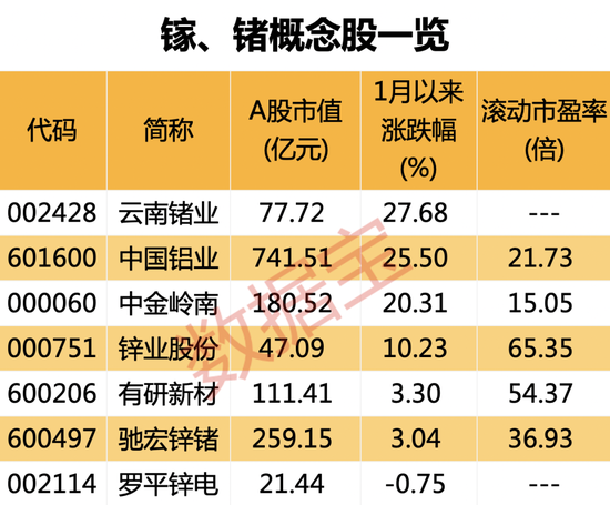 这些概念股今年以来平均涨幅12.76%,云南锗业、中国铝业、中金岭南年内涨幅超20%。有研新材、驰宏锌锗、罗平锌电年内涨幅跑输上证指数。