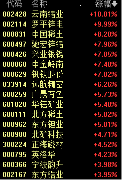 稀土永磁板块也大涨,中科磁体涨超18%,银河磁体涨超14%。
