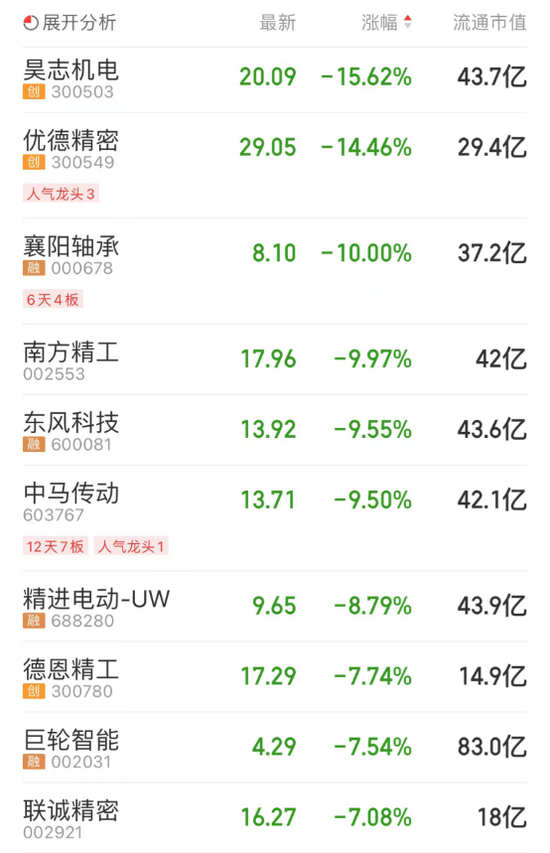 机器人概念中的最强分支、被网友称为“牛股集中营”的减速器板块今天上午暴跌。昊志机电跌超15%,优德精密跌超14%,襄阳轴承、南方精工跌停,中马传动跌超9%。