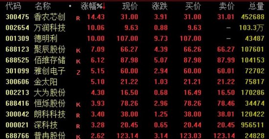 存储芯片概念强势拉升,截至收盘,香农芯创大涨14.4%,盘中触及涨停再创新高;万润科技、德明利涨停,聚辰股份涨逾7%,佰维存储涨约6%。