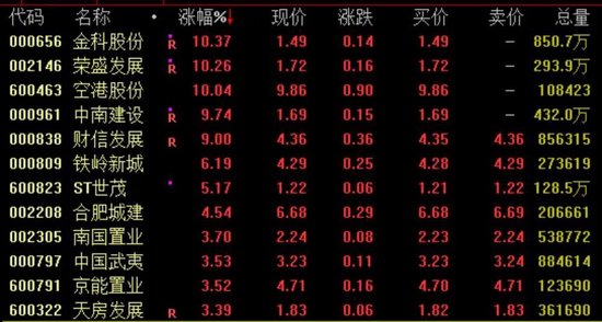 地产板块盘中发力走高,截至收盘,金科股份、荣盛发展、空港股份、中南建设等涨停,财信发展涨9%,铁岭新城涨逾6%。