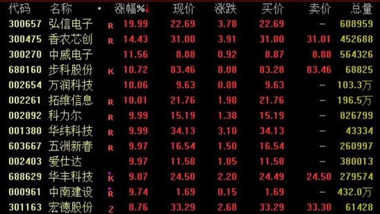 机器人概念亦拉升,弘信电子“20cm”涨停,中威电子涨超11%,科力尔、华纬科技、五洲新春、爱仕达等涨停,新时达、华工科技、继峰电子等涨超7%。