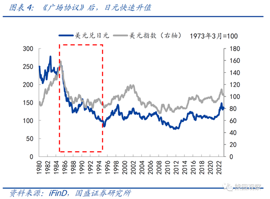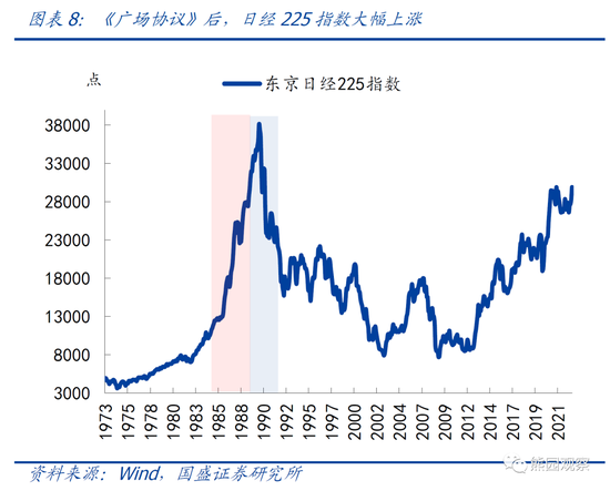 外部冲击加大日本经济压力。1985年,美国为解决巨额贸易赤字问题,与日本等?国签署了《广场协议》,要求其抛售美元。此后日元迅速升值,1985-1988年,3年内日元升值约86%;叠加一系列贸易限制,同期日本出口大幅回落,GDP占比由13.9%降至9.6%。