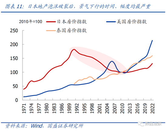 少子化、老龄化严峻,加剧泡沫破裂冲击。纵观日本泡沫经济起落,地产及土地市场的暴跌对经济的伤害最大。客观来说,在市场经济环境下地产泡沫经常产生,如90年日本地产泡沫、97年东南亚地产泡沫、08年美国次贷泡沫等,这与房地产体量大、高杠杆,容易受到政策、流动性刺激的特点有关。但相比而言,东南亚、美国的地产泡沫破裂后,房价基本在此后2-3年内就能逐步企稳反弹。而日本地产泡沫后,景气下行则持续了几十年,这背后应是与日本人口加速老龄化有关。1990年前后,正是日本人口老龄化速度最快的时期,且此后几十年内,日本老龄化率持续上行至近30%,出生率则降至约7‰。人口深度老龄化导致地产需求持续下降,地产景气难以真正修复。