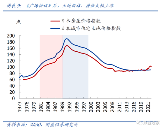 >货币政策是短期催化。具体传导路径为:外部冲击加大日本经济压力,经济压力倒逼货币宽松,货币宽松催生资产价格泡沫,倒逼货币收紧,1989-1991年日本央行连续五次加息,贴现率从3.25%上升至6.00%,股票和房价泡沫破裂。