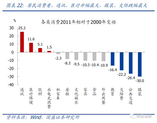 微观看,居民呈现“低欲望”特征。消费更注重简单实用,奢侈品消费低迷,“不婚主义”、“宅文化”盛行,外出就餐、交际、服装消费跌幅最大。仅有受益于老龄化的医药消费、受益于科技进步的通讯设备消费增长较多。