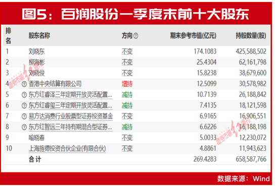 百润股份则同时得到了香港中央结算有限公司和由萧楠管理的易方达消费行业等机构产品的共同持有(见图5)。