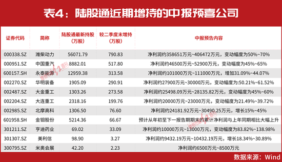 另外,结合实时更新持仓情况的陆股通数据来看,北上资金近日也在对歌尔股份、潍柴动力、中国重汽、永泰能源等中报预增公司进行加仓操作。