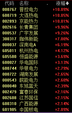 今天上午,电力板块表现突出,晋控电力、大连热电(维权)、京能热力等多股涨停。