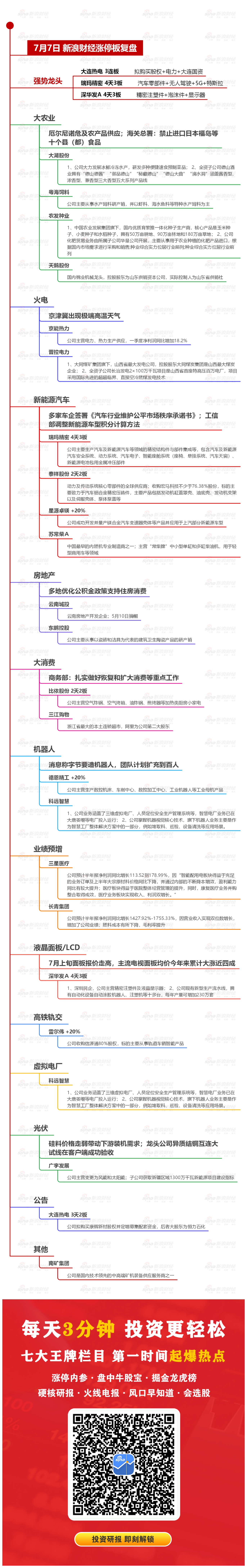 【7月7日沪深两市涨停分析】创业板指震荡跌超1%,农业股逆势大涨。