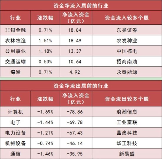 今日沪深两市主力资金开盘净流出135.26亿元,尾盘净流出31.92亿元,两市主力资金全天净流出229.65亿元。