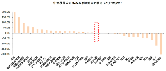 分析师展望显示整体业绩仍待改善,关注自下而上的结构性机会。具体来看:1)能源、原材料行业:大宗商品价格回落影响能源原材料盈利,部分中游原材料行业可能受益成本回落,但工业生产和地产需求略弱,其中上游油气行业可能是值得关注的亮点,天然气价格上涨叠加成本控制提升可能使相关板块盈利继续保持韧性;消费建材的龙头公司也有望实现盈利增长,其余领域需要关注政策对需求的支持。2)中游领域:景气成长赛道相对稀缺,光伏的硅料硅片以及新能源车产业链中上游仍面临供需压力;交通运输在低基数背景下业绩同比改善,但航空需关注成本以及汇兑因素影响;火电受益煤炭价格回落业绩有望向好。中游领域业绩有望超预期的可能主要来自部分出口领域、火电以及油运等,部分风电制造、水电、硅料和硅片等细分领域存在业绩不及预期可能。3)下游消费:下游消费行业普遍仍处于回暖状态,复苏程度呈现分化,出行相关消费场景恢复弹性最大,其中空调、商用车、中药、部分旅游景区等领域有望超预期;汽车及零部件、白酒和医美行业有望维持较高业绩增长;部分免税、餐饮和调味品相关领域存在一定业绩压力。4)TMT领域:运营商二季度收入增速可能受企业上云、信息化进程影响;手机需求仍相对低迷,全球半导体周期仍在低位但呈现初步见底迹象,整机渠道库存出清以及原材料价格下降也有望提升利润率;AI在业绩层面的兑现仍需时间。业绩有望超预期的领域包括运营商设备、半导体制造、电信IT、工业软件、手机整机品牌,部分半导体设备领域可能弱于预期。5)金融地产:银行业绩环比表现相对平稳,关注净息差以及资产端贷款定价影响;市场活跃度回暖驱动券商费类业务,但市场波动对投资业务可能带来影响,二季度业绩有下滑压力;保险前期谨慎情绪影响下行业可能已经出现超调,当前位置向下空间较为有限;地产基本面仍承受一定压力,主流房企仍处指标筑底阶段,个别国企进行定增可能存在业绩超预期。根据中金覆盖股票和分析师预测的不完全统计,二季度盈利同比增速较高的是零售、旅游酒店及餐饮、非酒食品饮料、传媒互联网和轻工日化等。