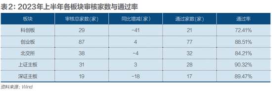2023年上半年,中国资本市场也开启了一项最重要的变革,即全面注册制的正式落地实施。但全面注册制并不意味着对IPO项目质量要求的放松。上半年,“双创”(科创板与创业板)板块的过会率较上年同期相比出现明显下滑。