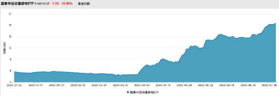 值得注意的是,蹭上AI东风,和游戏、人工智能、传媒相关的ETF份额一路上涨,最猛的年内份额增长超550%,相关ETF产品年内合计“吸金”超百亿。