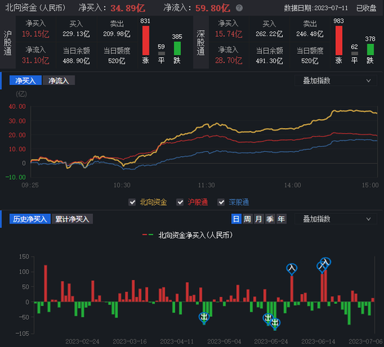 7月11日,A股三大指数震荡走高。个股涨多跌少,北向资金净买入逾34亿元。有乐观的机构分析人士表示,投资人近期可以用相对不那么悲观、保守的心态,在波动中等待市场拐点到来。
