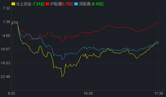 从资金面来看,7月12日上午,北上资金净买入金额为-7.31亿元,其中,沪股通净买入0.79亿元,深股通净买入-8.10亿元。