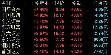 截至发稿,国盛金控(维权)涨超7%,中国银河、东吴证券、东北证券等跟涨。