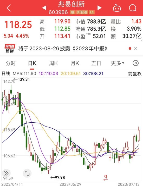 兆易创新最新股价118.25元/股,今日股价上涨4.45%,年内股价累计上涨16.03%。
