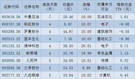 涨停股方面,今日有43只个股以涨停价报收,其中,有9只个股,股价已连续上涨超过3个交易日;跌停方面,有12只个股跌停价报收。从申万一级行业看,计算机行业涨停股数量居首,达11只,紧随其后的是电子和机械设备行业,涨停股数分别为6只和5只。
