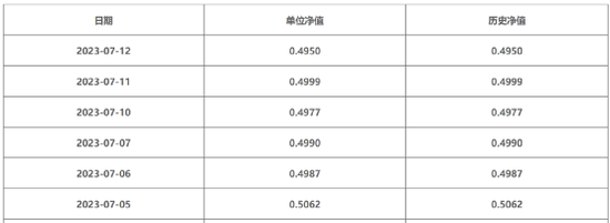 “阳光红卫生安全主题精选”这只理财产品的单位净值在今年7月6日首次跌破了0.5元,跌至0.4987元。官网数据,截止今年7月12日,该理财产品的净值为0.4950元;而中国理财网数据显示,截止7月13日,该产品净值为0.4999元。
