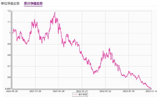 从这只理财产品的净值走势来看,2021年7月一度攀升至1.1915元的高位,成就过“高光时刻”;但2021年下半年到2022年4、5月却遭遇重挫,净值曾经跌到了0.63元附近;此后强势反弹,到2022年8月一度涨至0.8667元的位置;但后来又出现大幅回撤,而且震荡下跌了将近一年时间。