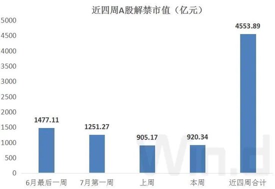 简而言之,A股近四周解禁市值合计达到4553.89亿元。