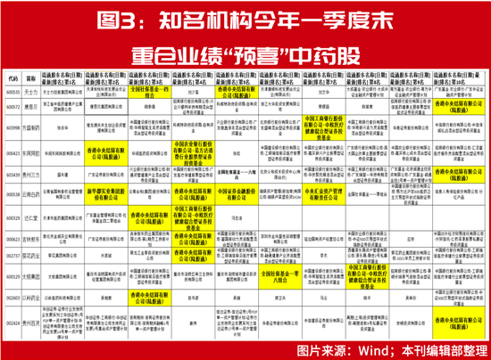 需要注意的是,在众多知名机构现身的中药股中,天士力、康恩贝和方盛制药等12家公司预计今年上半年实现业绩同比增长(见图3)。