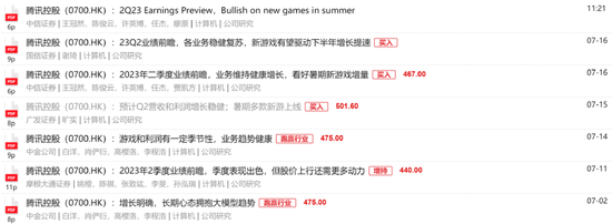 腾讯披露二季报之前,多家券商发表业绩前瞻报告表示看多。