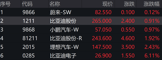 热门新能源汽车逆势普涨