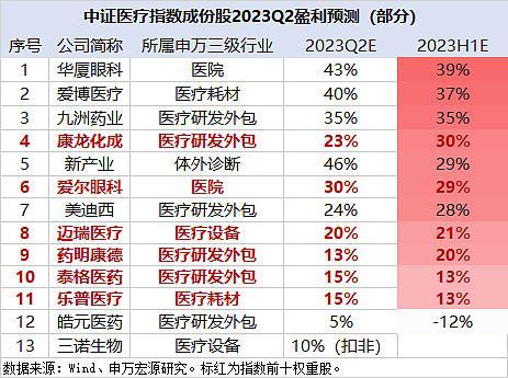 单季度来看,13只成份股中有8只第二季度净利润预计实现20%以上增长,其中爱尔眼科、泰格医药、乐普医疗、华厦眼科等6家公司第二季度净利增速超过了上半年增速,反映业绩恢复势头向好。