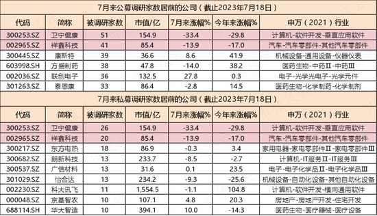 (制表:市值风云APP;来源:Choice数据,截至2023年7月18日)
