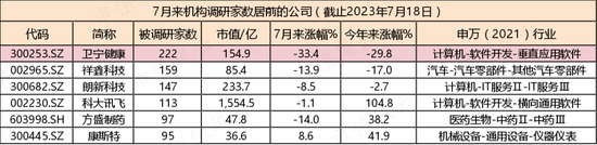 另外,被调研次数居前的公司中,机器人概念股还有英威腾(6次)、机器人(5次)等,这三只股7月来均跌超12%,但今年来涨幅都在10%以上,表现最好的是机器人,今年来涨近60%。
