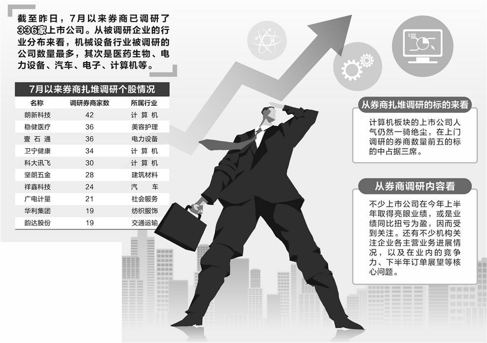 7月以来,券商已调研了336家上市公司。