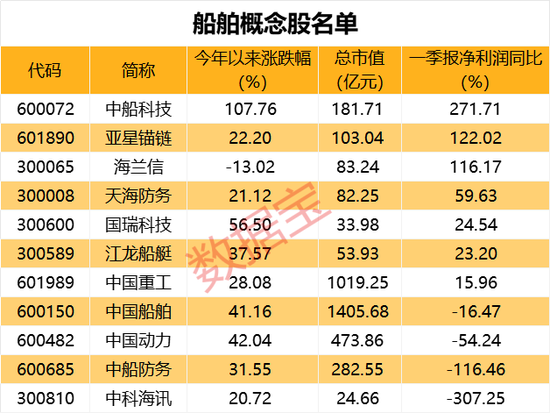 证券时报·数据宝统计,A股中船舶概念股有11只,目前有3股已经发布了上半年业绩预告,均预喜。