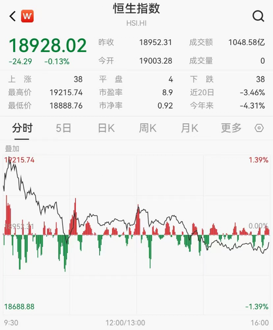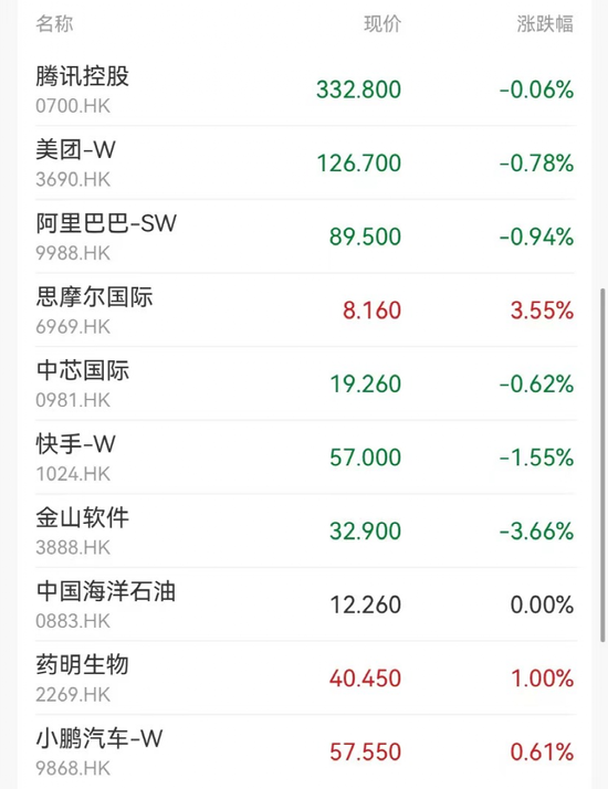 盘面上,苹果概念股大跌,舜宇光学科技跌近14%领跌蓝筹,高伟电子、瑞声科技跟跌;AI、半导体承压,商汤跌近6%,华虹半导体跌4%;内险股走弱,中国太保跌近3%,中国人寿跌近2%。此外,影视娱乐股、电力股下跌明显,半导体股、濠赌股、中资券商股纷纷走低。