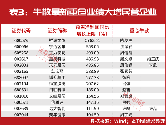 此外,公私募顶流们的重仓股也多有业绩大增的民营企业,如公募顶流朱少醒以及私募顶流冯柳就联手重仓了宝新能源,傅鹏博和朱璘管理的睿远成长价值重仓了同庆楼和梦网科技……