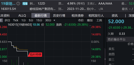 不过,碧桂园境内债掀起临停潮,多只债券跌超20%。“21碧地03”、“21碧地02”跌超30%,“19碧地03”跌超29%,“21碧地01”跌超27%,“21碧地04”跌超26%。
