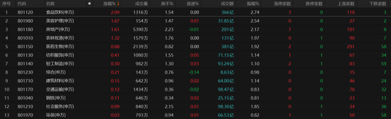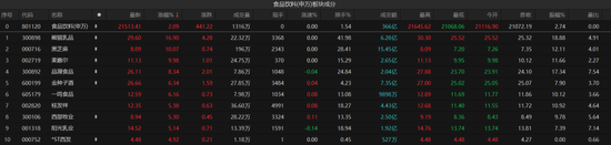 食品饮料板块以2.09%的涨幅领涨各行业板块。板块内,118只个股收涨,仅3只个股收跌。其中,熊猫乳品大涨16.9%,黑芝麻、麦趣尔10CM涨停,品渥视频、金种子酒、一鸣食品等涨超6%。