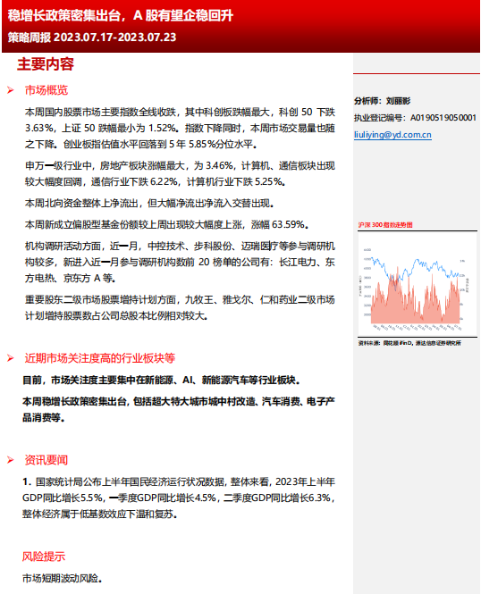 源达:稳增长政策密集出台 A股有望企稳回升