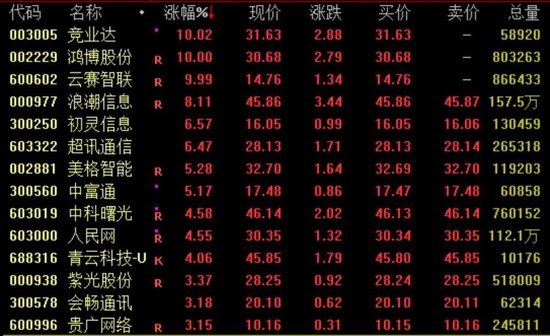 算力概念今日反弹走高,截至收盘,竞业达、鸿博股份、云赛智联涨停,浪潮信息涨超8%,盘中一度触及涨停;中科曙光涨逾4%。