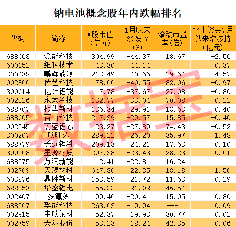 资金面上看,7月以来,按照区间成交均价计算,北上资金增持超亿元的概念股仅宁德时代、中国长城、格林美。其间融资净买入逾亿元的为鹏辉能源、宁德时代、三峡能源。