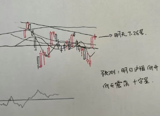 所以综合以上分析对于明天A股的走势,我做出了非常谨慎的判断,我认为明天市场很可能会收一个振幅非常小的十字星,或者星形线!