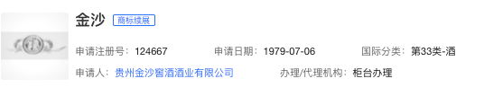此外,第三方商业查询平台显示,金沙古酒的181个商标中,“金沙古酒坊”“金沙古酱”等179个商标均显示无效。