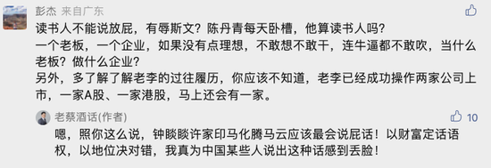 不过也有消费者认为李瑞杰是真性情,是敢想敢干,“读书人不能说放屁,有辱斯文?一个老板,一个企业,如果没有点理想,不敢想不敢干,连牛逼都不敢吹,当什么老板?”